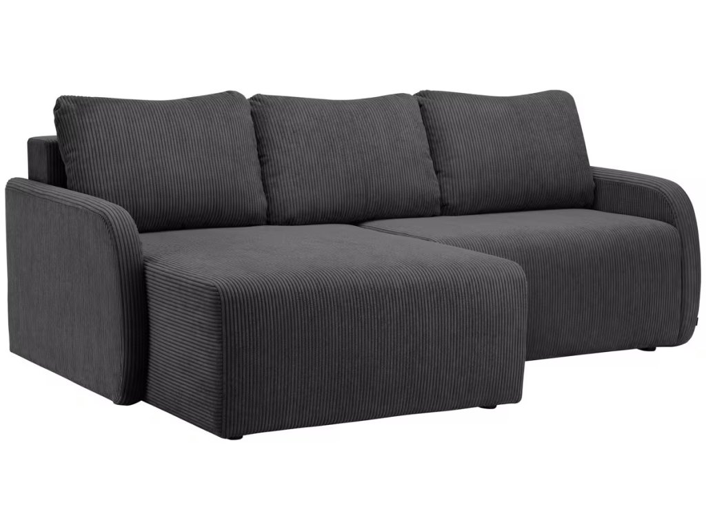 Antracitová manšestrová rozkládací sedací souprava Mill s úložným prostorem