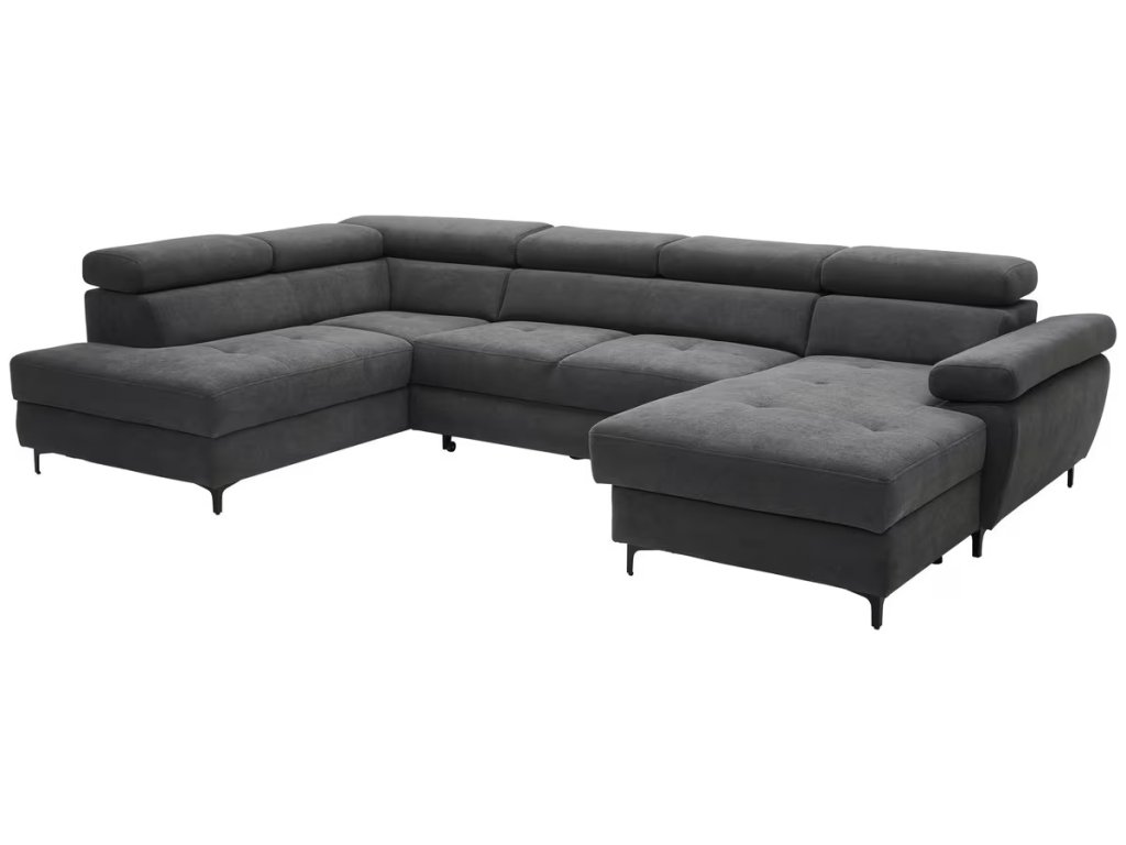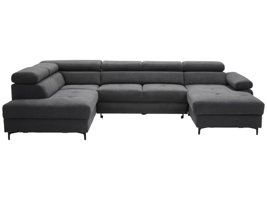 Antracitová rozkládací sedací souprava do U Hunter s úložným prostorem