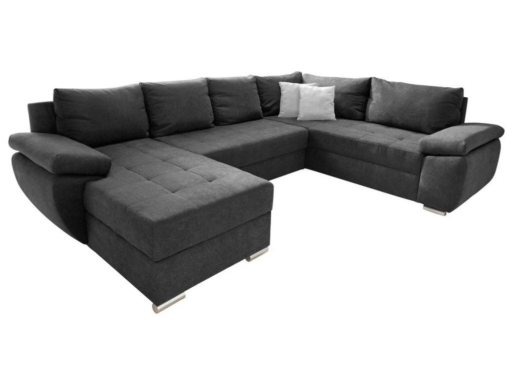Antracitová rozkládací sedací souprava do U Memfiest s úložným prostorem