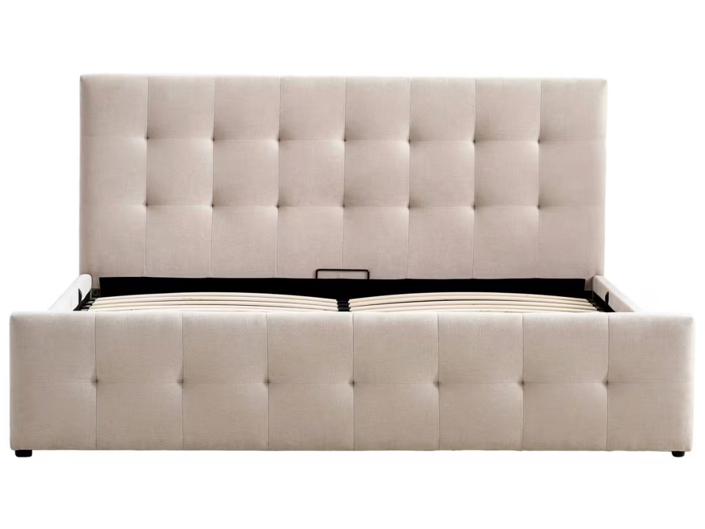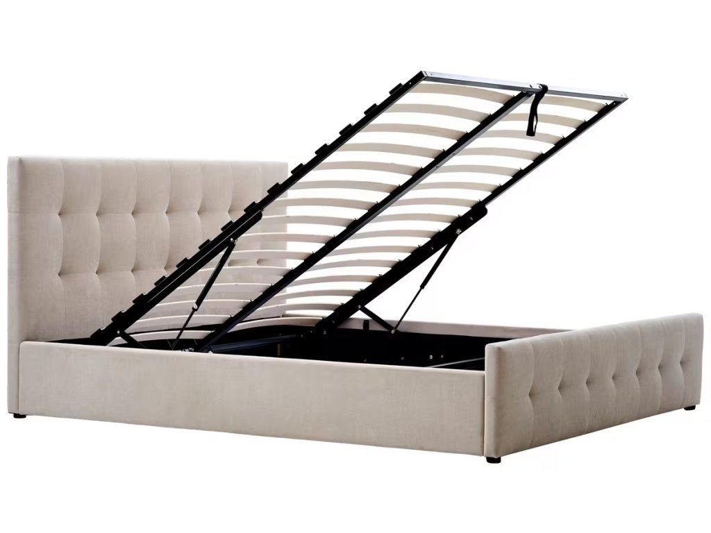 Béžová polstrovaná postel Zavala 140 x 200 s úložným prostorem