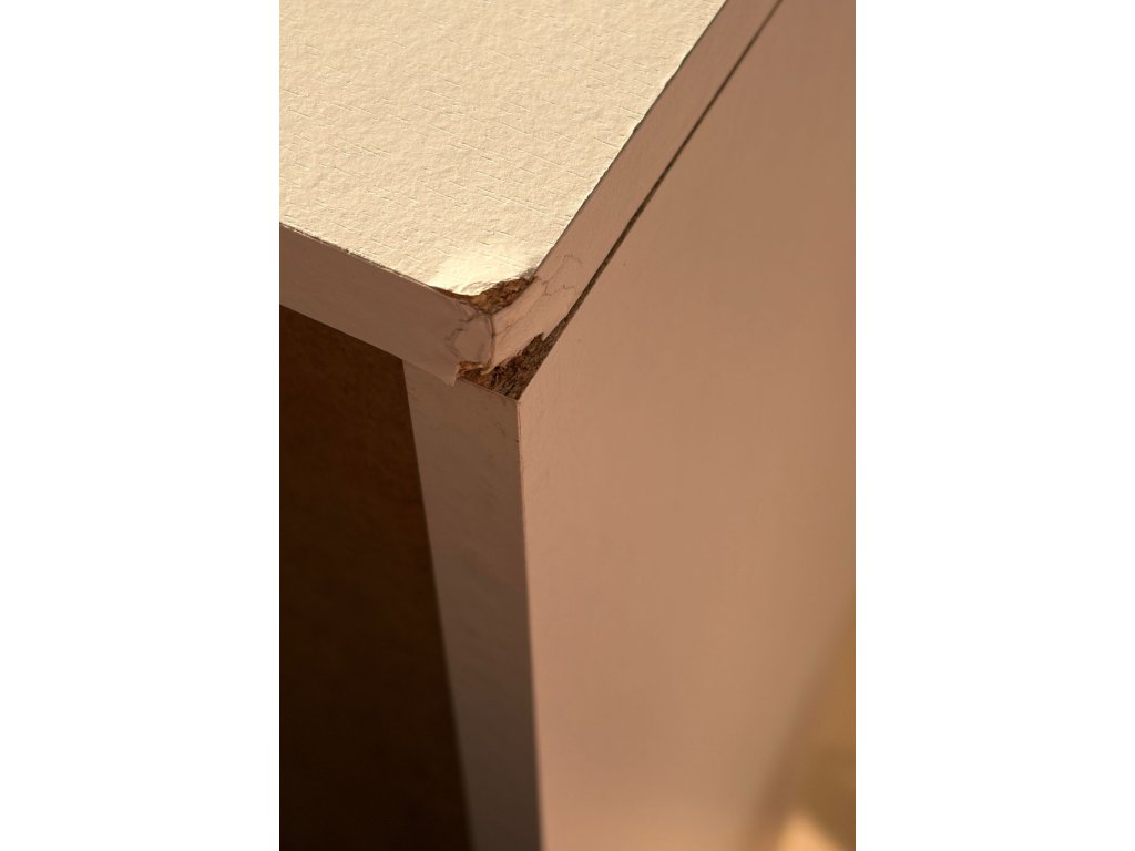 Defekt v levém zadním rohu vrchní desky