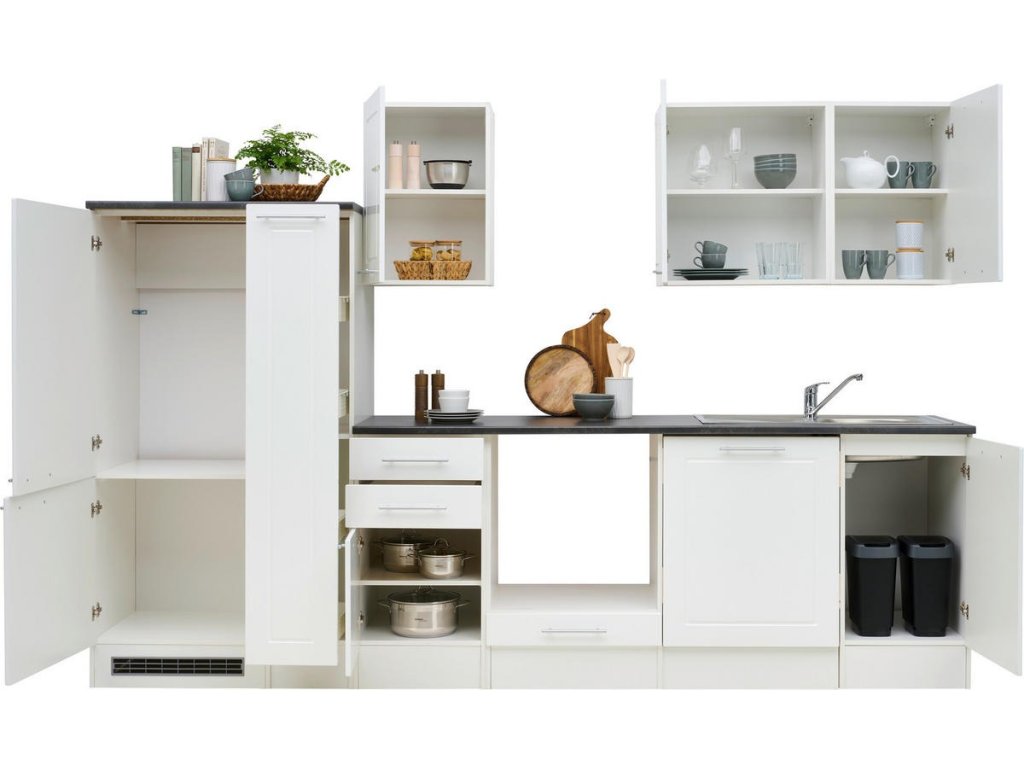 Dřez a dekorace nejsou součástí kuchyňské linky.