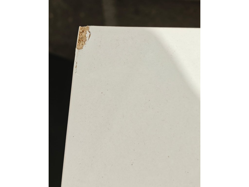 Defekt v levém zadním rohu vrchní desky
