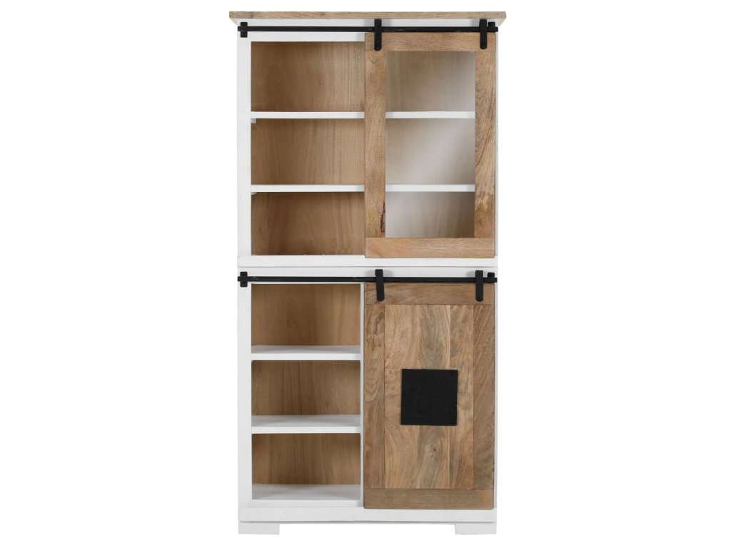 Bílá masivní vitrínová skříň Rustika III