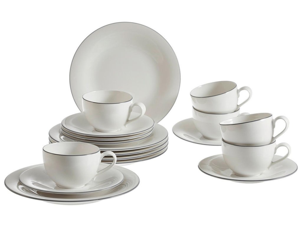 Bílá/šedá kávová souprava 14 dílná keramika Viller