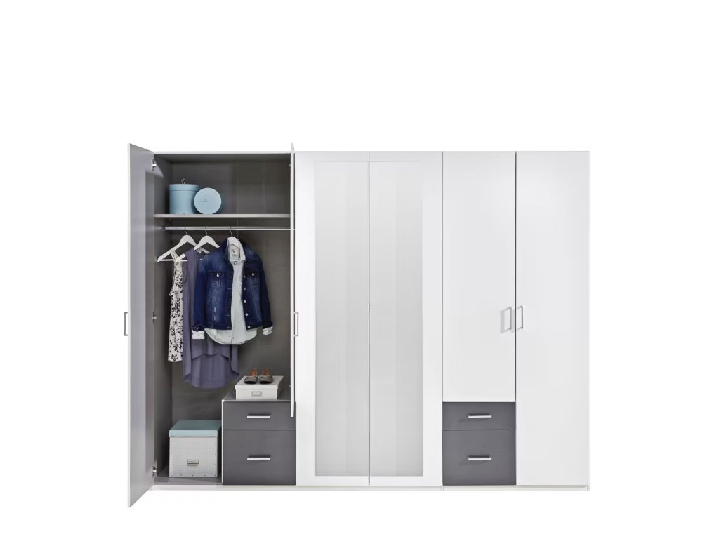 Bílá zrcadlová šatní skříň Brenda II