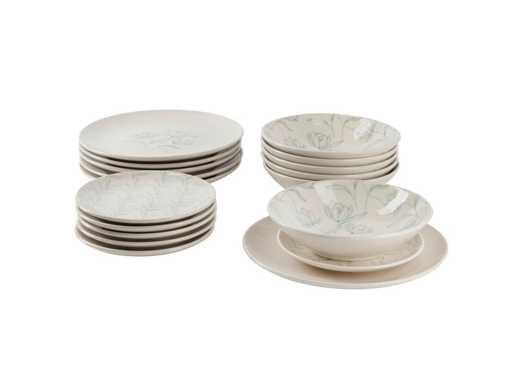 Bílo šedá kombinovaná souprava 18 dílná kamenina Nelani