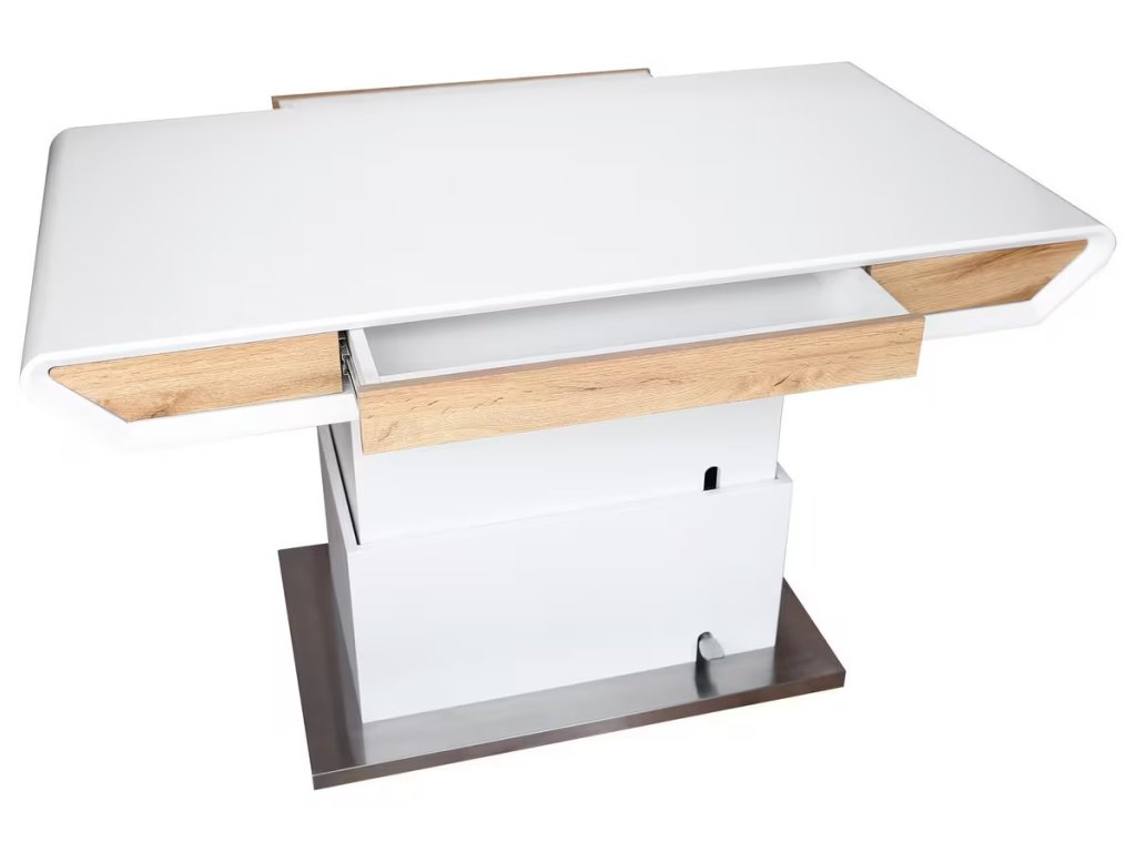 Bílý výškově stavitelný konferenční stolek Nina 130 x 70