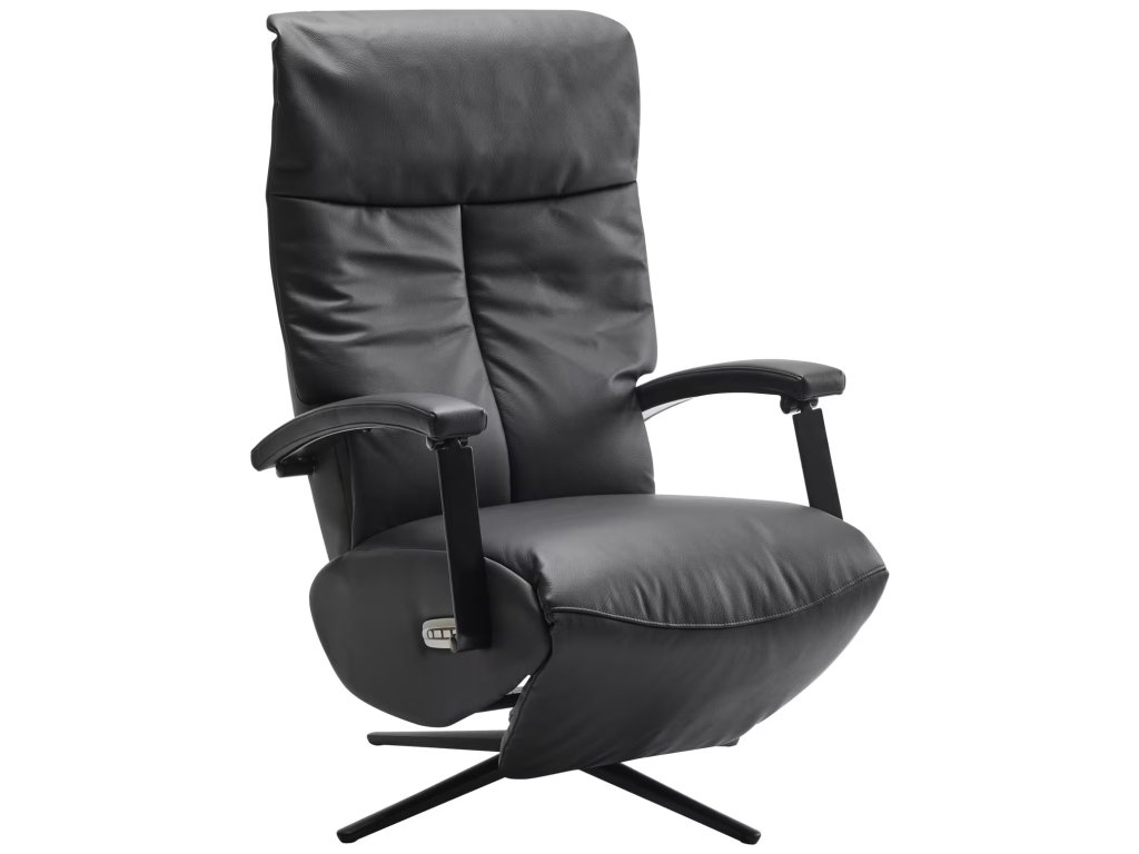Černé kožené el. polohovatelné relaxační křeslo Kenton
