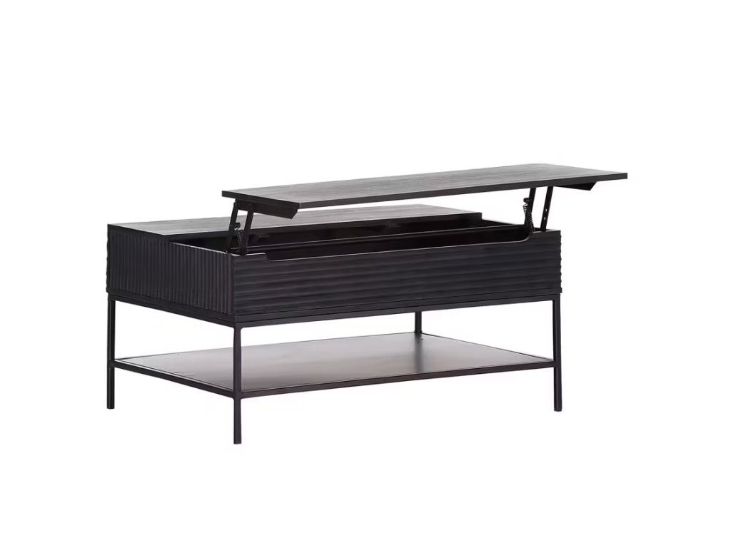 Černý masivní výškově stavitelný konferenční stolek Leticia s úložným prostorem