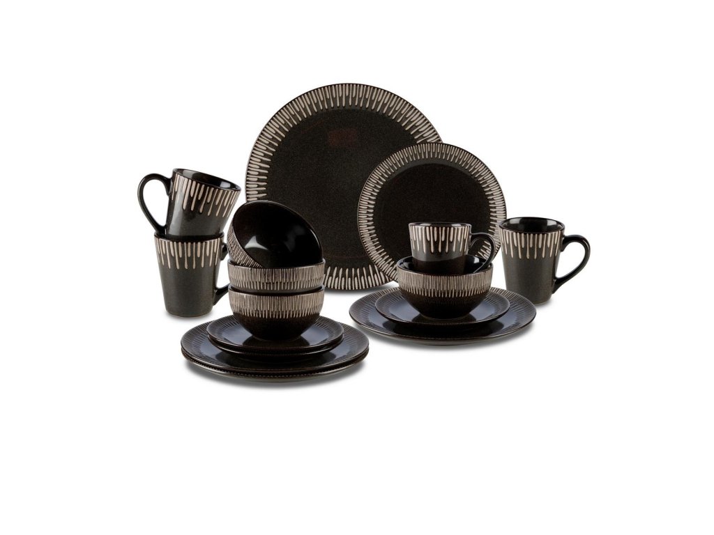 Hnědá/šedá kombinovaná souprava 15 dílná kamenina Maze