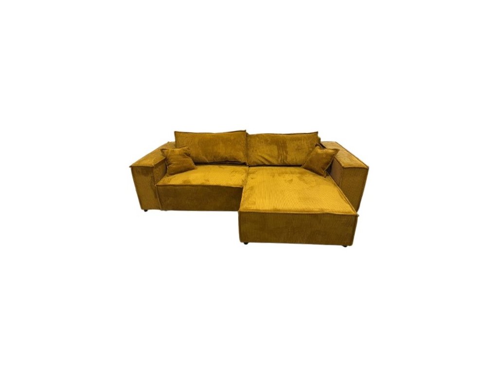 Hořčicově žlutá manšestrová rozkládací sedací souprava Bonilla s úložným prostorem