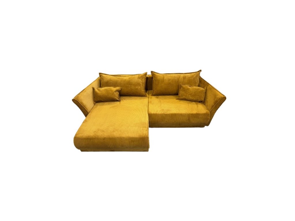 Hořčicově žlutá manšestrová rozkládací sedací souprava Herrera s úložným prostorem