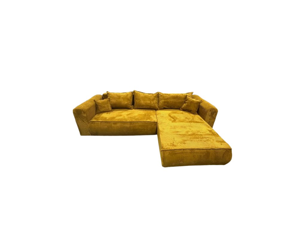 Hořčicově žlutá manšestrová rozkládací sedací souprava Nona II s úložným prostorem