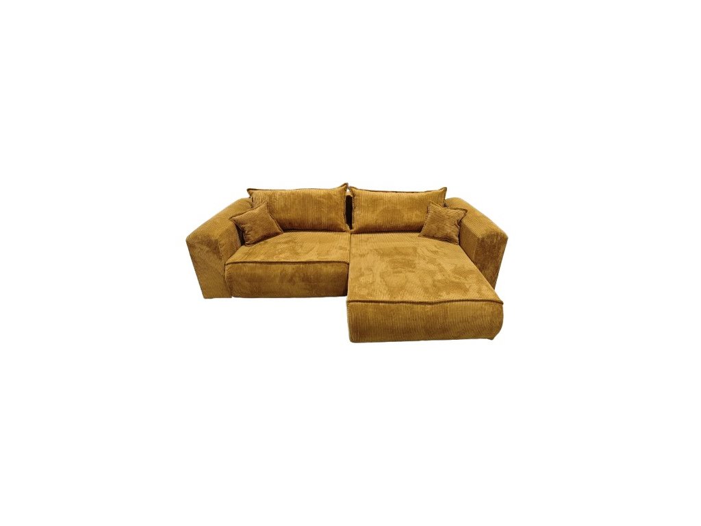 Hořčicově žlutá manšestrová rozkládací sedací souprava Nona s úložným prostorem