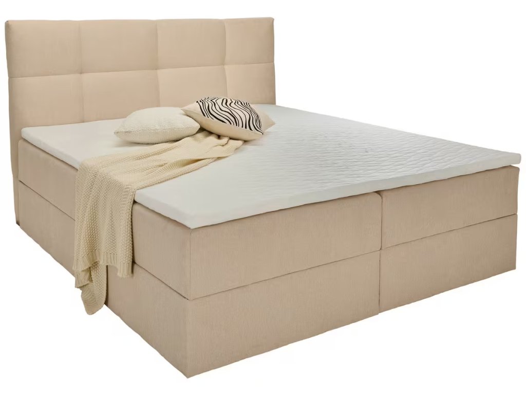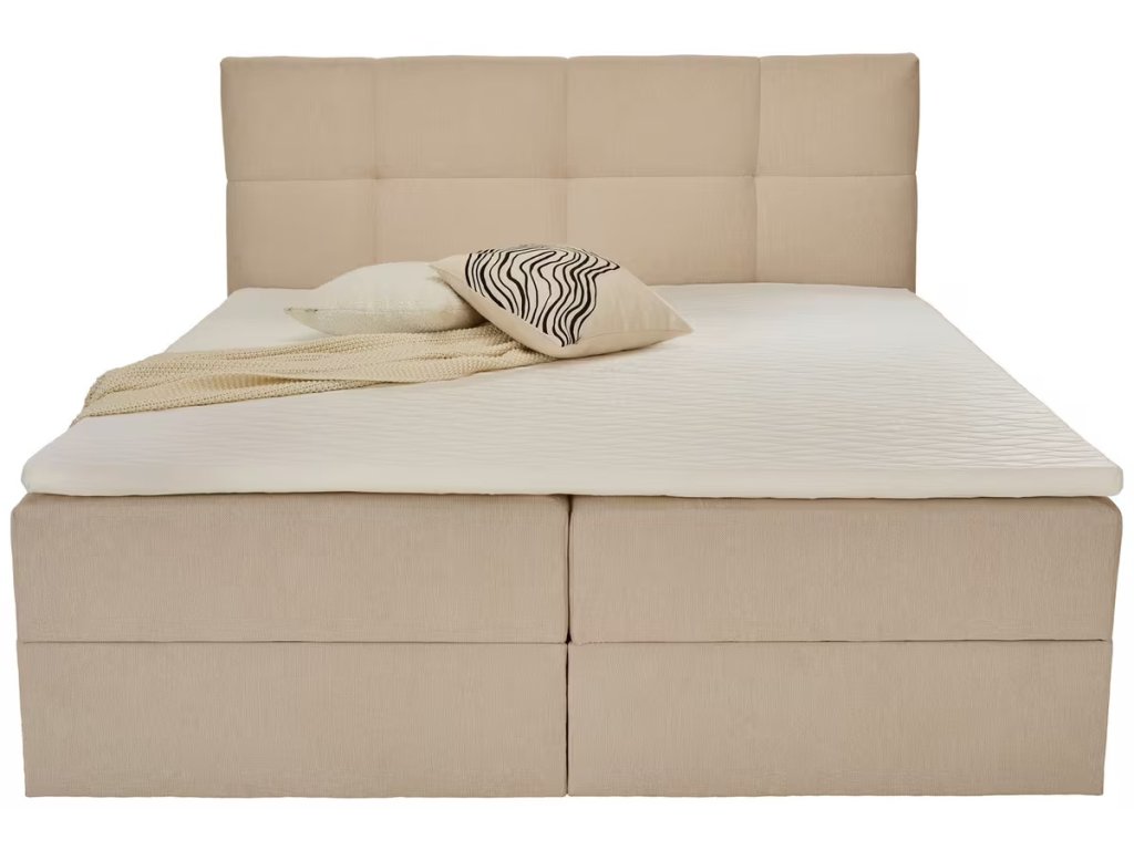 Krémová boxspringová postel Herring 180 x 200 s úložným prostorem