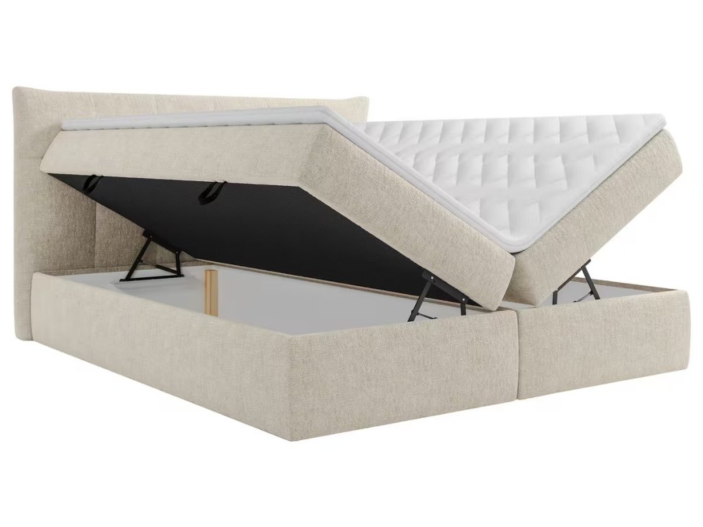 Krémová boxspringová postel Kirsten 180 x 200 s úložným prostorem