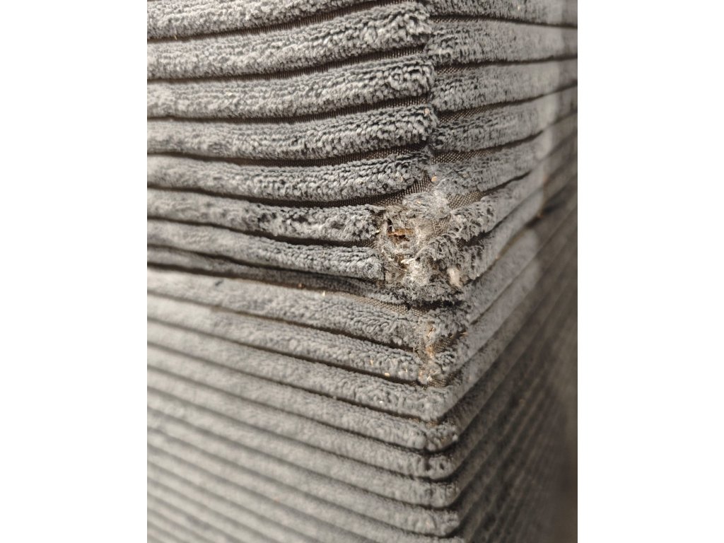 Defekt na potahu matrace a na hraně stěny postele