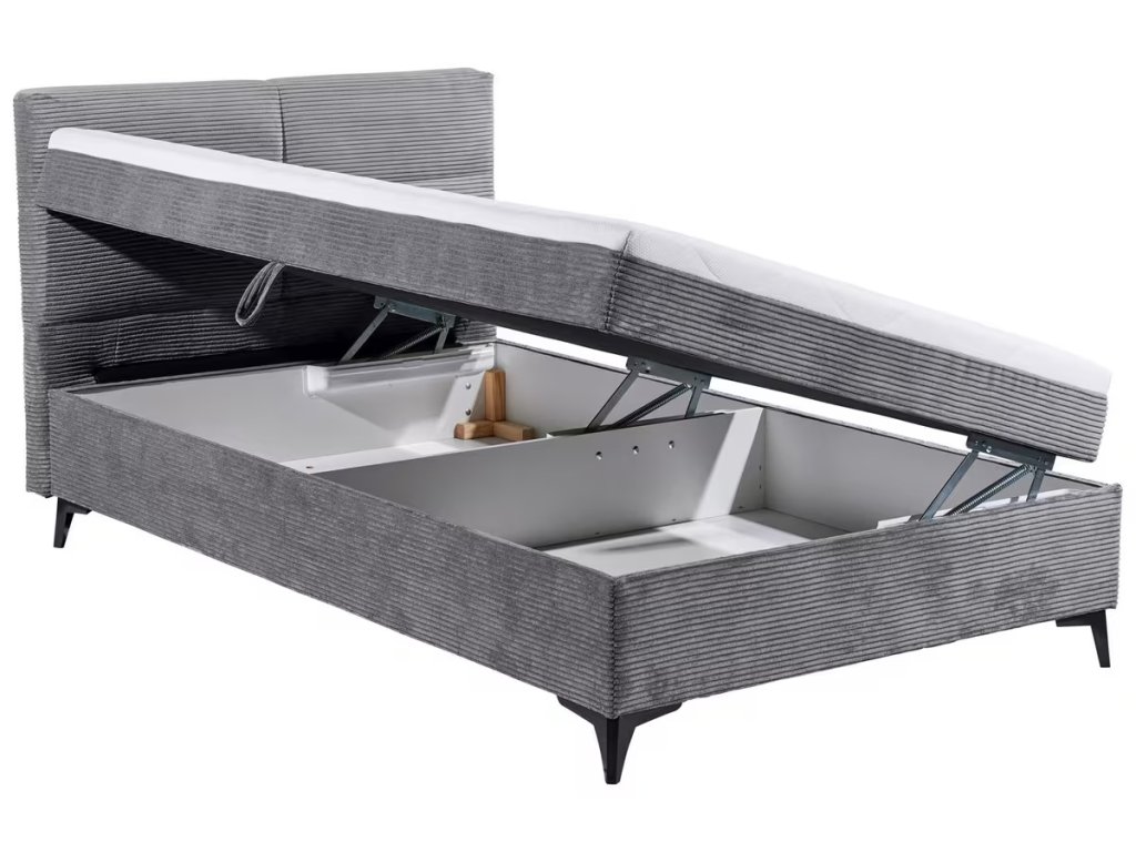 Šedá boxspringová postel Wilmer 120 x 200 s úložným prostorem