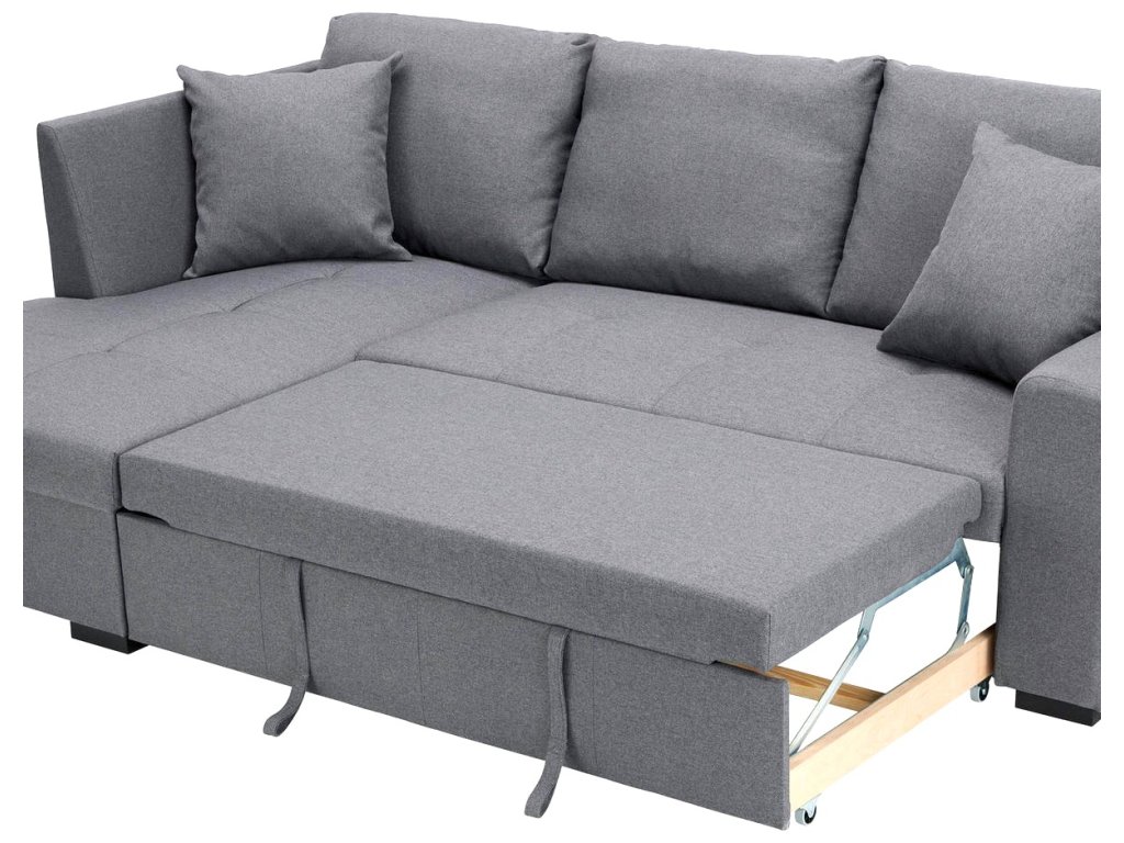 Šedá rozkládací sedací souprava Latina s úložným prostorem