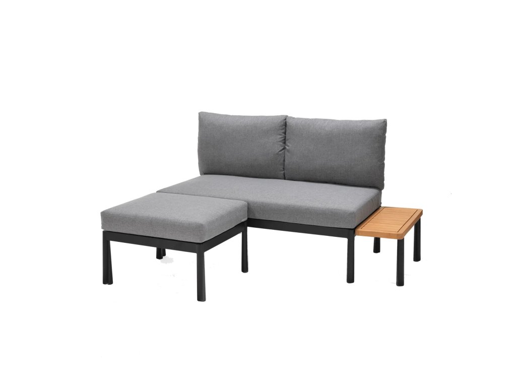 Šedá zahradní pohovka Brady s taburetem