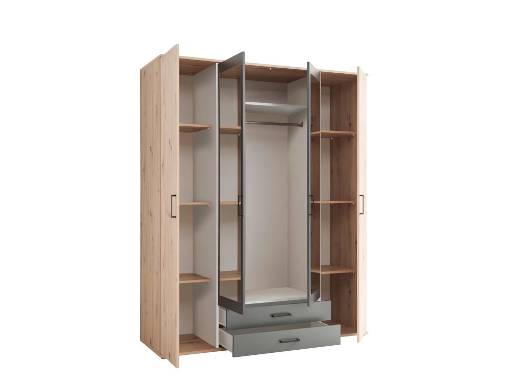 Světle hnědá zrcadlová šatní skříň Lismore