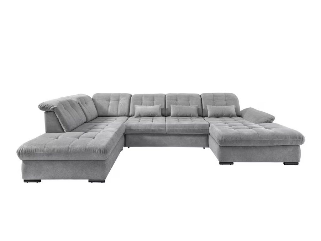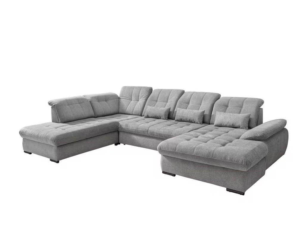 Světle šedá rozkládací sedací souprava do U Newton s úložným prostorem