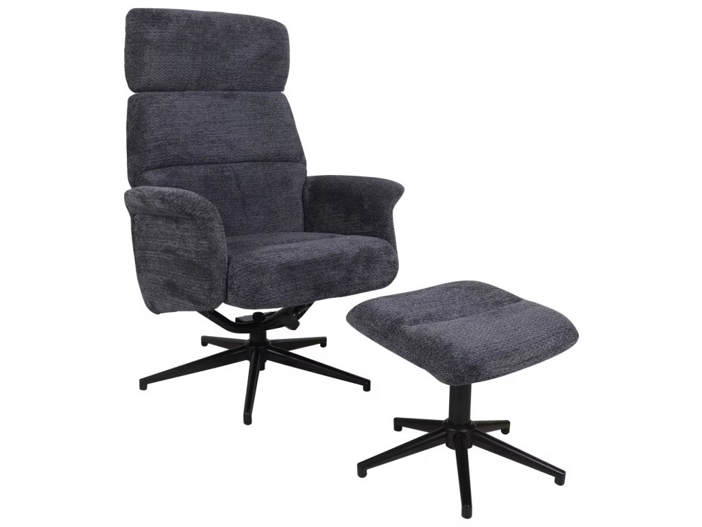 Tmavě modré relaxační křeslo Edmund s podnožkou
