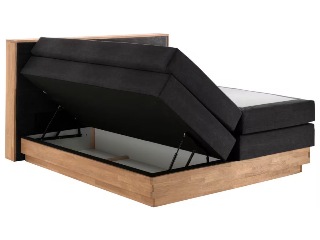 Tmavě šedá boxspringová postel Burton 200 x 200 s úložným prostorem