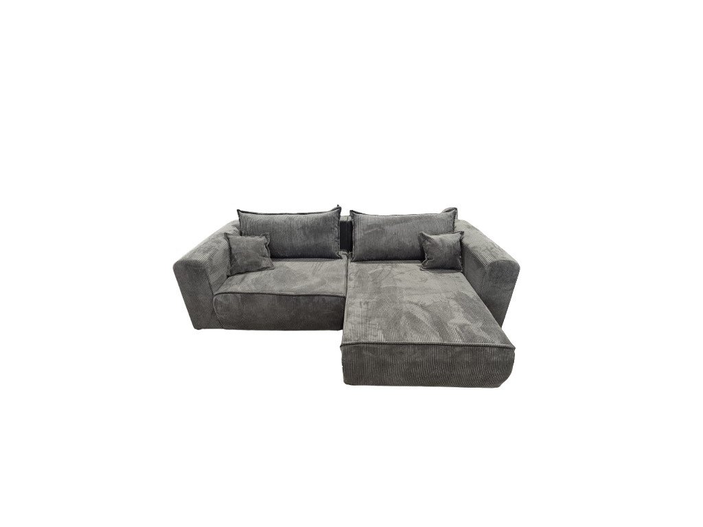 Tmavě šedá manšestrová rozkládací sedací souprava Nona s úložným prostorem