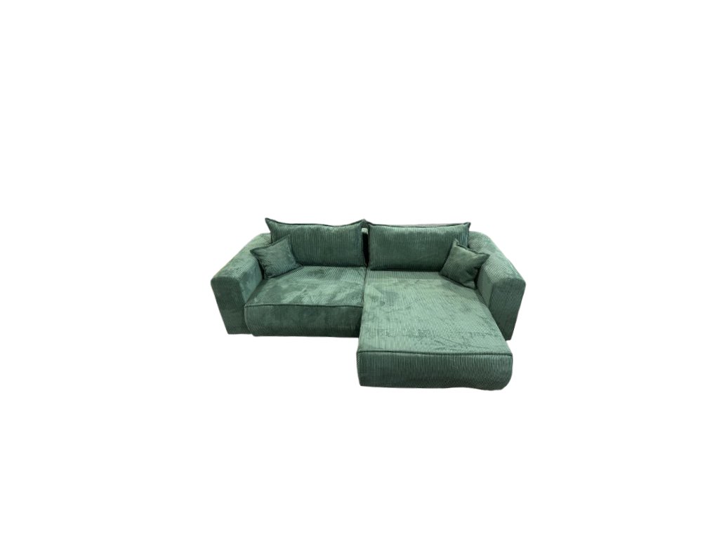 Tmavě zelená manšestrová rozkládací sedací souprava Nona s úložným prostorem