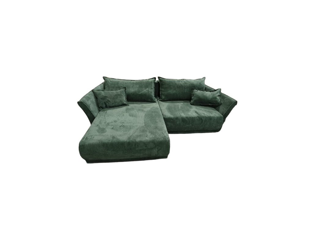 Tmavě zelená manšestrová rozkládací sedací souprava Herrera s úložným prostorem