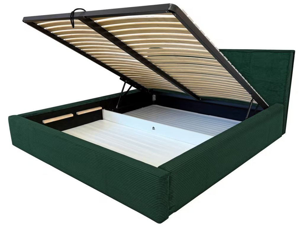 Zelená čalouněná postel Marcie 140 x 200 s úložným prostorem